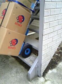 階段運搬は独自なサービスの電動階段台車使用
