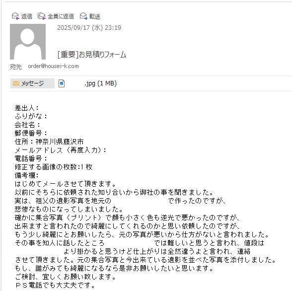 神奈川県藤沢市のお客様よりご依頼頂きました。 https://housei-k.com/information/55143.html 実際の加工例 https://housei-k.com/category/works