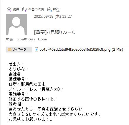 群馬県太田市のお客様よりご依頼頂きました。 https://housei-k.com/information/55153.html 実際の加工例 https://housei-k.com/category/works