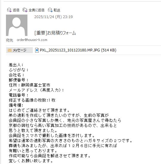 静岡県富士宮市のお客様よりご依頼頂きました。 https://housei-k.com/information/55504.html 実際の加工例 https://housei-k.com/category/works