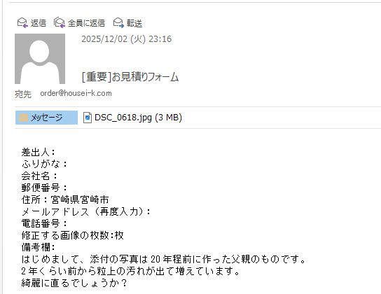 宮崎県宮崎市のお客様よりご依頼頂きました。 https://housei-k.com/information/55585.html 実際の加工例 https://housei-k.com/category/works