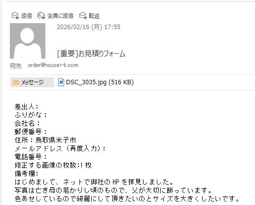 鳥取県米子市のお客様よりご依頼頂きました。 https://housei-k.com/information/56078.html 実際の加工例 https://housei-k.com/information/56078.html