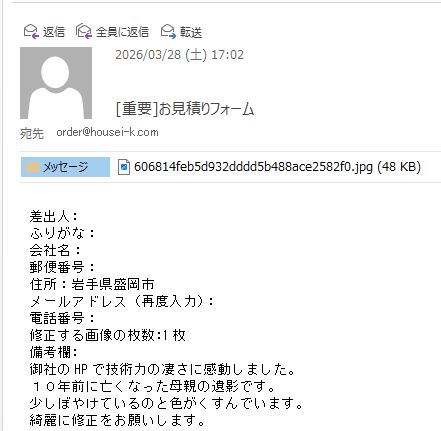 岩手県盛岡市のお客様よりご依頼頂きました。 https://housei-k.com/information/56626.html 実際の加工例 https://housei-k.com/category/works