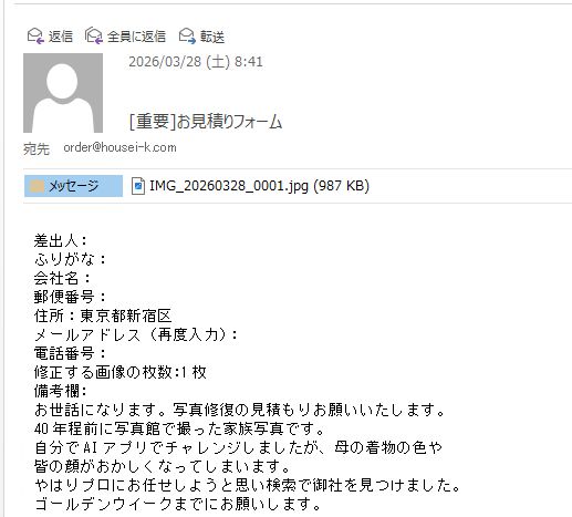 東京都新宿区のお客様よりご依頼頂きました。 https://housei-k.com/information/56676.html 実際の加工例 https://housei-k.com/category/works