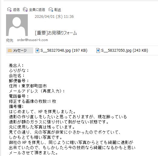 東京都町田市のお客様よりご依頼頂きました。 https://housei-k.com/information/56740.html 実際の加工例 https://housei-k.com/category/works