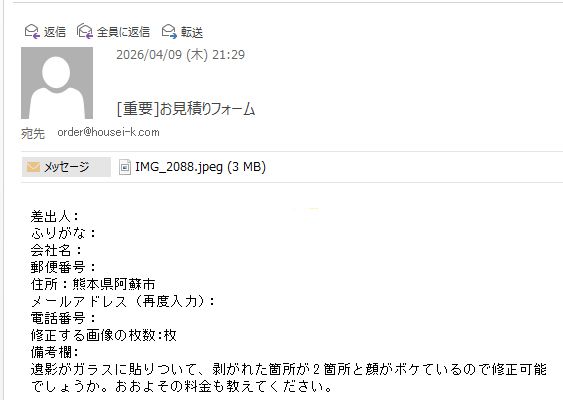 熊本県阿蘇市のお客様よりご依頼頂きました。 https://housei-k.com/information/56874.html 実際の加工例 https://housei-k.com/category/works