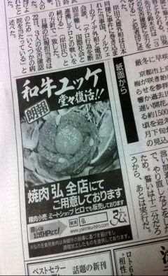 “【京都の和牛専門店】 新聞の一面に・・・!!”の詳細は »