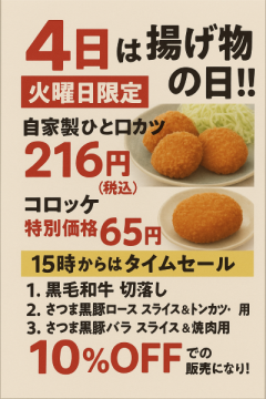 “今週火曜日も揚げ物の日やります(^o^)/”の詳細は »