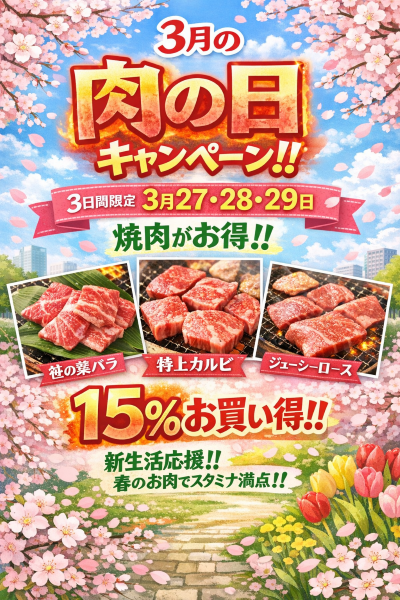 27日から29日まで「肉の日キャンペーン」を実施ます!! https://nadai-kasasho.com/news/15510.html