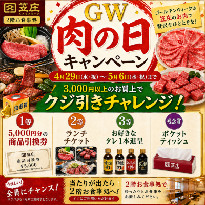 4月29日から5月6日まで肉の日クジ引き大会を開催致します!! https://nadai-kasasho.com/news/15601.html