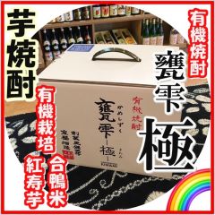 芋焼酎「甕雫 極」は子会社の農業生産法人(有)アグリカンパニーにて農薬を使わずに有機肥料を用いて栽培した「宮崎紅寿芋」を原料とし、麹米にもアイガモの生態を利用して栽培した「アイガモ米」のみを使用しております。麹には黒麹を用い、高級感溢れる洗練された味わいに仕上げました。 また甕も柄杓も大理石となっており、専用の木箱に入れてお届け致します。