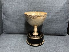トロフィーのお買取です。こちらは銀製。昨今の資材高騰により銀を使ってトロフィーを作るということはあまりなくなってきましたが、特にバブル期の1990年前後には結構こういったお品物がございました。古い時代