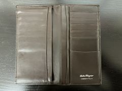 フェラガモのお買取です。こちらは札入れ。結構使用感がございます。これぐらいのダメージでも全く問題ございません。ぜひおまかせください。おかげさまで13周年!フェラガモのお買取りもおたからや箕面店へ!
