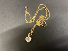 ダイヤモンドネックレスのお買取です。ゴールド枠でハートシェイプではありますが、2.2カラットございます。なかなかの大粒。しっかりと査定致します。ぜひおまかせください。おかげさまで14周年!金・プラチナ