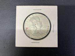 外国コインのお買取です。こちらはアメリカのフランクリンハーフダラー。額面は50セントです。肖像はアメリカ建国の父のひとり、ベンジャミン・フランクリン。もともと人気のあるコインですが、銀貨であるため以前