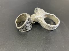 リングのお買取です。こちらはシルバー。資材としてシルバーを購入し、ハンドメイドでアクセサリーを作成し、趣味で楽しんでいらっしゃる方、実際販売されている方、様々なお客様がご来店されます。在庫が残ったとい