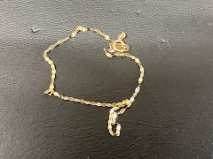 ブレスレットのお買取です。こちらはK18。細めのブレスレットです。金相場が高い水準であるため、ピアスや細いリングなどのお持ち込みも増えております。ご購入された時期にもよりますが、査定額が購入金額を超え