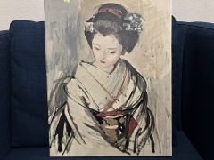 絵画のお買取です。こちらは小磯良平。「舞妓」という作品になります。実は原画ではなく200部製作された複製画となります。他にも木版、銅版、リトグラフ、シルクスクリーンなど様々な技法の絵画もお買取しており