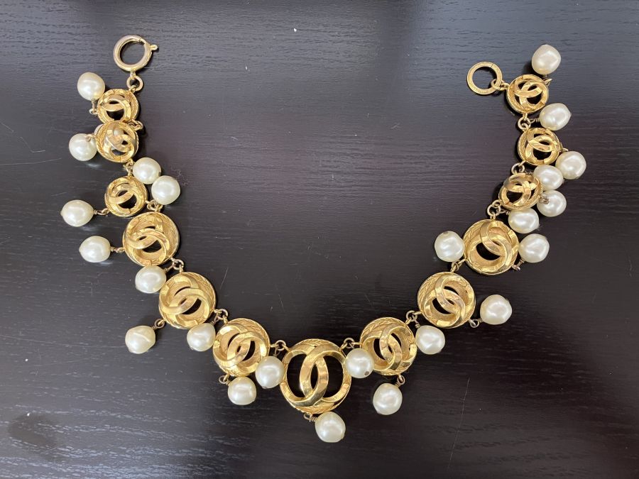 シャネルのお買取です。こちらはネックレス。年代的には結構昔のお品物になりますが、こういうヴィンテージっぽいアクセサリーは人気がございます。ぜひおまかせください。おかげさまで13周年!シャネルのお買取りもおたからや箕面店へ! ※お車でお越しの際はイカリスーパーさん向かいの市営第2駐車場へ。無料駐車券お渡ししております。