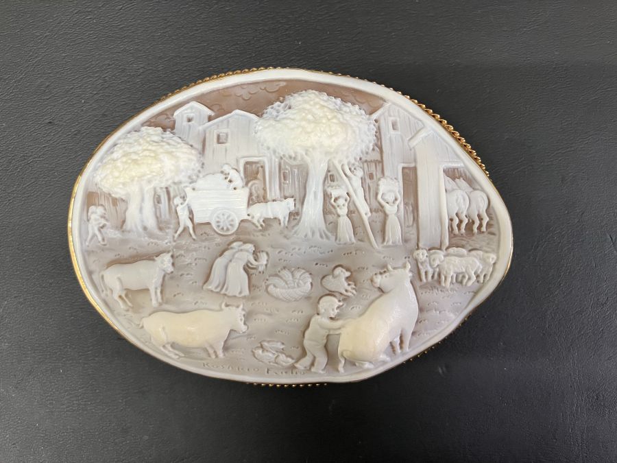 カメオのお買取です。画像では分かりませんが、幅が約10cmほどあるかなり大きいサイズです。おそらく今までお買取させて頂いたカメオの中でも、トップクラスの大きさでしょう。K18の枠にはめられていて、ブローチとなっております。大小問わずぜひおまかせください。おかげさまで13周年!カメオのお買取りもおたからや箕面店へ! ※お車でお越しの際はイカリスーパーさん向かいの市営第2駐車場へ。無料駐車券お渡ししております。