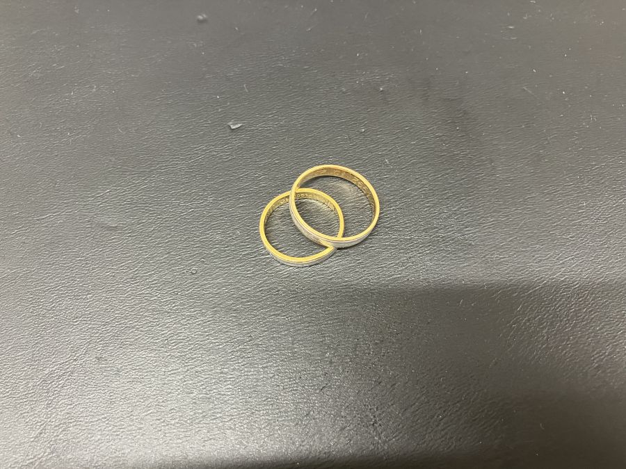 リングのお買取です。こちらは一時期流行ったゴールドとプラチナのコンビリング。プラチナ900とK18が半々に使われており、当時結婚指輪でチョイスされる方も多かったです。コンビのジュエリーも正確に査定致します。ぜひおまかせください。おかげさまで13周年!金・プラチナ・ダイヤモンドのお買取りもおたからや箕面店へ! ※お車でお越しの際はイカリスーパーさん向かいの市営第2駐車場へ。無料駐車券お渡ししております。