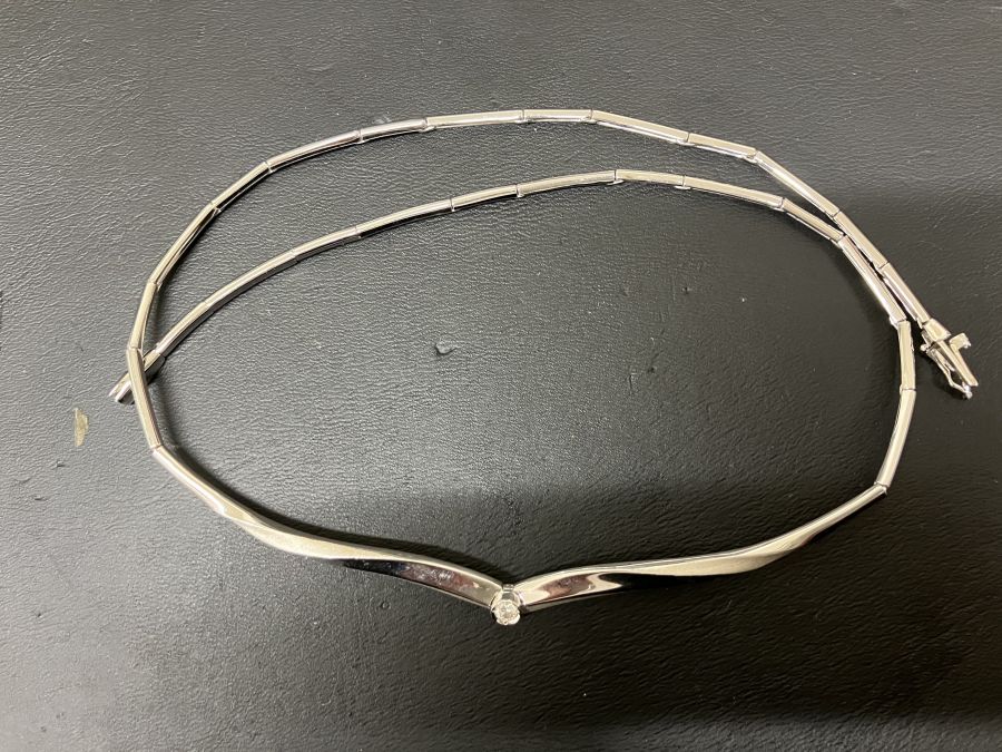 ネックレスのお買取です。こちらはK18ホワイトゴールド。トップに0.1カラットですが、ダイヤモンドもデザインされています。ダイヤモンド及びホワイトゴールドもしっかりと査定致します。ぜひおまかせください。おかげさまで13周年!金・プラチナ・ダイヤモンドのお買取りもおたからや箕面店へ! ※お車でお越しの際はイカリスーパーさん向かいの市営第2駐車場へ。無料駐車券お渡ししております。