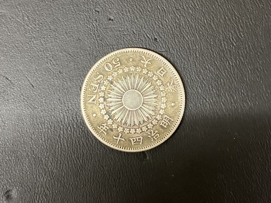 古銭のお買取です。こちらは旭日50銭銀貨。明治39年から大正6年まで発行された貨幣です。画像は明治40年発行のものですが、特に明治期は各年度発行枚数が多く、よくお買取させて頂く古銭のひとつです。古銭は知識が必要です。買取経験豊富なおたからや箕面店にぜひおまかせください。おかげさまで13周年!古銭のお買取りもおたからや箕面店へ! ※お車でお越しの際はイカリスーパーさん向かいの市営第2駐車場へ。無料駐車券お渡ししております。
