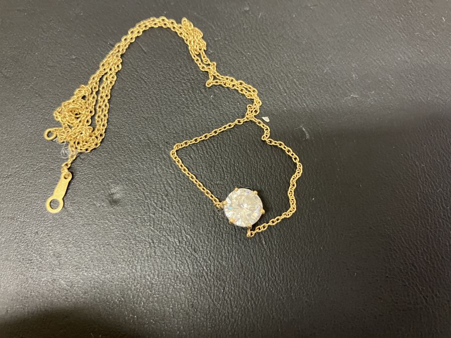 ネックレスのお買取です。こちらはK18。今日は少し金相場が下がっておりますが、昨日は最高値を更新いたしました。なかなか売り時を考えられておられる方もいらっしゃるかもしれませんが、もちろん急激に相場が下がるということもございます。今回お買取させて頂いたお品物は、トップにダイヤモンドがデザインされておりますが、ダイヤモンドもしっかりと評価した上で査定致します。ぜひおまかせください。おかげさまで14周年!金・プラチナ・ダイヤモンドのお買取りもおたからや箕面店へ!