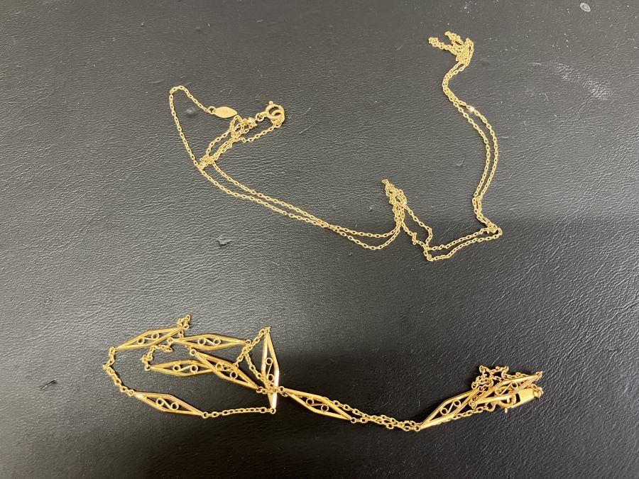 ネックレスのお買取です。こちらはK18。海外の金相場も5000ドルを超え、日々相場は上がっております。細いネックレス2点ですが、結構な買取金額となります。ぜひおまかせください。おかげさまで14周年!金・プラチナ・ダイヤモンドのお買取りもおたからや箕面店へ! ※お車でお越しの際はイカリスーパーさん向かいの市営第2駐車場へ。無料駐車券お渡ししております。 ※ただ今テナントビルが外壁工事中です。ご迷惑をお掛けしますが何卒宜しくお願い致します。