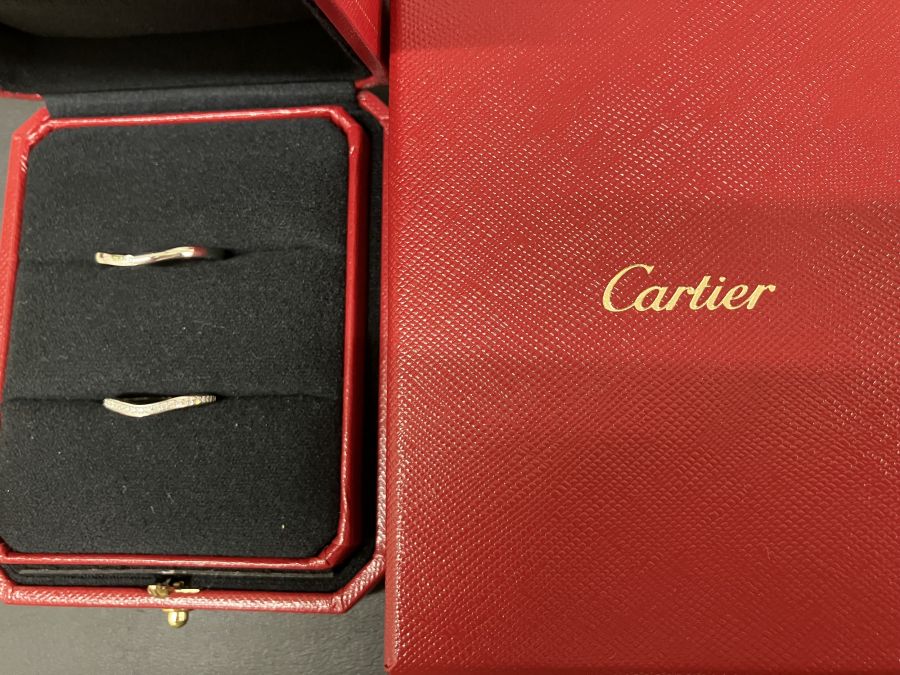 カルティエのお買取です。こちらはペアリング。画像では分かりづらいですが、プラチナ枠にダイヤモンドがメンズは1石、レディースはメレーがデザインされています。バッグや財布だけでなくブランドジュエリーのお買取りも大歓迎です!ぜひおまかせください。おかげさまで14周年!カルティエのお買取りもおたからや箕面店へ! ※お車でお越しの際はイカリスーパーさん向かいの市営第2駐車場へ。無料駐車券お渡ししております。