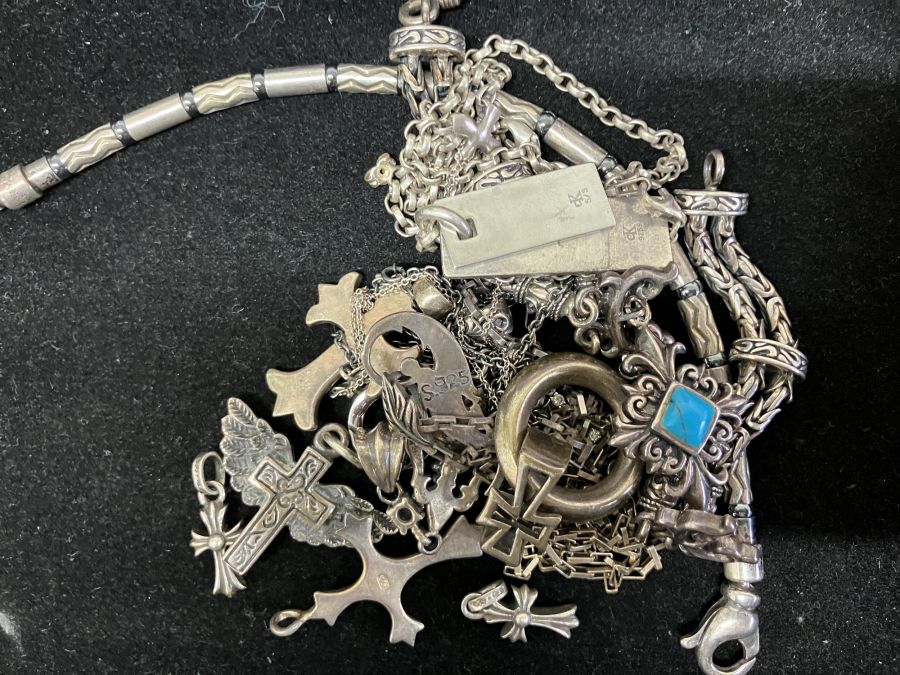 シルバーアクセサリーのお買取です。こちらは全てシルバー925。アクセサリーによく使われる品位です。使っていないシルバーアクセサリーも集めると結構な金額となります。シルバーの相場が高いうちにぜひ。おかげさまで14周年!金・銀・プラチナのお買取りもおたからや箕面店へ! ※お車でお越しの際はイカリスーパーさん向かいの市営第2駐車場へ。無料駐車券お渡ししております。
