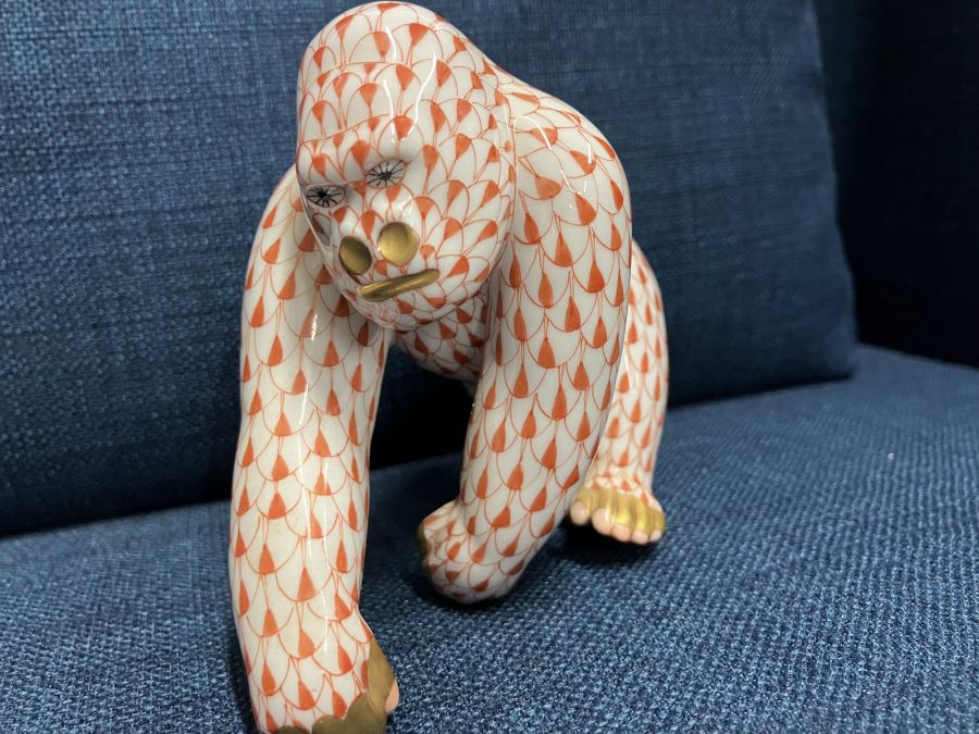 ヘレンドのお買取です。こちらはゴリラの陶器の人形。なかなか斬新なデザインです。柄といい立ち振る舞いといい、非常に芸術性の高い作品。こういったお品物も大歓迎です!ぜひおまかせください。おかげさまで14周年!ヘレンドのお買取りもおたからや箕面店へ! ※お車でお越しの際はイカリスーパーさん向かいの市営第2駐車場へ。無料駐車券お渡ししております。