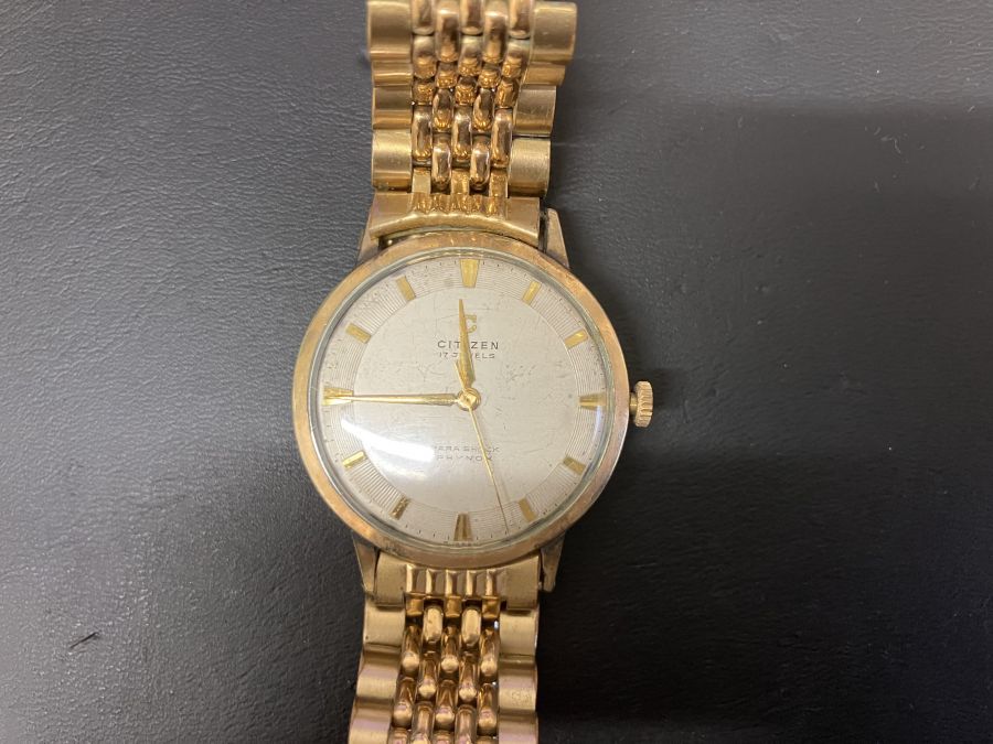 時計のお買取です。こちらはシチズン・パラショック。発売は1956年(昭和31年)なので、今から70年前の時計です。パラショックとは耐震装置のことで、国内初とのことです。機械は手巻。今だしっかりと稼働しております。非常にビンテージで魅力的な時計ですね。古い時計もぜひおまかせください。おかげさまで14周年!シチズンのお買取りもおたからや箕面店へ! ※お車でお越しの際はイカリスーパーさん向かいの市営第2駐車場へ。無料駐車券お渡ししております。