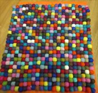 ネパールウール100%★人気のフエルトボールを集めて作ったスクエアマットです。もこもこしていて座り心地も抜群!大きなサイズのご注文もお受けしています。(ご希望のサイズによっては注文後の製作となります)