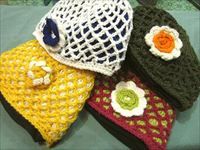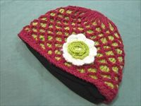 クラシックなクロス編みのお花モチーフ付きニット帽です。もちろん、ネパールウール100%!カラーは4食。どれも素敵な色の組み合わせですよ。