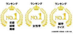 仲人の舘の舘智彦の著書「別れを回避する心理戦力」が、「女性学」「雑学・クイズ」の他に、「恋愛・結婚・離婚」においても「Amazon 売れ筋ランキング」で1位となり、名誉ある3冠を達成しました! 3冠